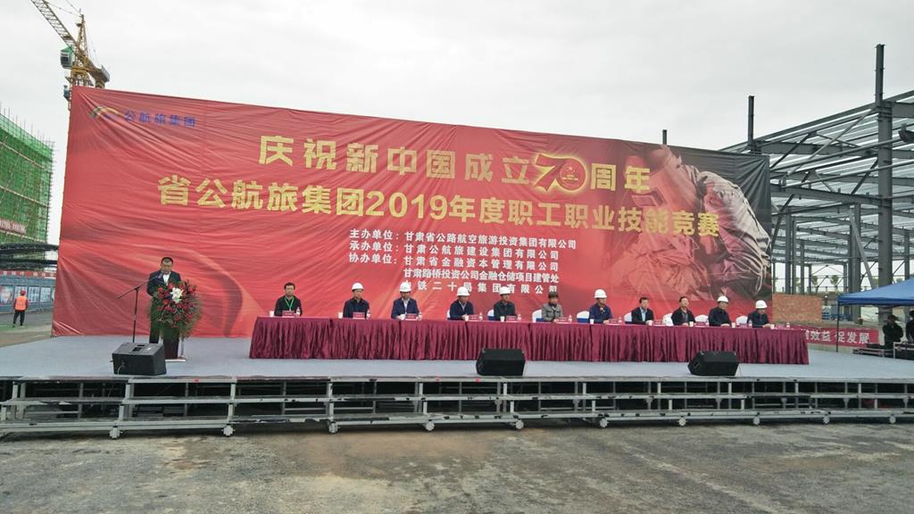 2019年9月18至19日,由省公航旅集團(tuán)有限公司主辦,甘肅公航旅建設(shè)集團(tuán)有限公司承辦,甘肅省金融資本管理有限公司、甘肅路橋投資公司金融倉(cāng)儲(chǔ)項(xiàng)目建管處、中鐵二十局集團(tuán)有限公司協(xié)辦的“慶祝新中國(guó)成立70周年 省公航旅集團(tuán)2019年度職工職業(yè)技能競(jìng)賽”在甘肅公航旅金融倉(cāng)儲(chǔ)基地(一期)項(xiàng)目順利舉行。甘肅省總工會(huì)副主席張愛(ài)華、省公航旅集團(tuán)總工程師喬小兵出席了大賽并作致辭。本次大賽還邀請(qǐng)了省人社廳職業(yè)技能鑒定中心主任何元魁,省職工技術(shù)協(xié)會(huì)副理事長(zhǎng)、辦公室主任、省組委會(huì)辦公室副主任張學(xué)會(huì)、工人日?qǐng)?bào)駐甘肅記者站站長(zhǎng)康勁等蒞臨指導(dǎo)。集團(tuán)公司相關(guān)部門(mén)、各子公司相關(guān)負(fù)責(zé)人、甘肅公航旅金融倉(cāng)儲(chǔ)項(xiàng)目建管處相關(guān)工作人員等參加活動(dòng)。