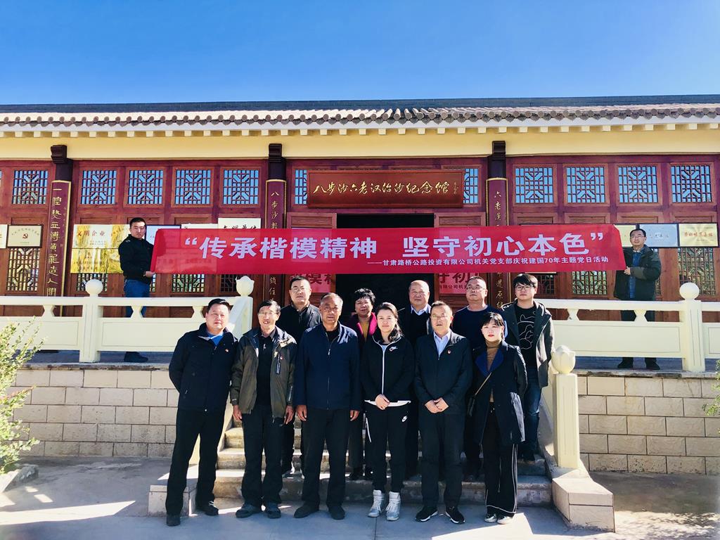 為隆重慶祝新中國(guó)成立70周年,進(jìn)一步增強(qiáng)公司干部職工的愛國(guó)主義情懷和民族自豪感,激發(fā)廣大黨員干部群眾干事創(chuàng)業(yè)的熱情,根據(jù)省公航旅集團(tuán)慶祝建國(guó)70周年廣泛組織開展“我和我的祖國(guó)”主題教育宣傳活動(dòng)以及公司黨委開展的“不忘初心跟黨走 牢記使命加油干”慶祝建國(guó)70周年系列活動(dòng)啟動(dòng)儀式相關(guān)安排部署,路橋投資公司機(jī)關(guān)黨支部黨員代表于10月18日赴武威古浪縣赴古浪戰(zhàn)役紀(jì)念館、八步沙紀(jì)念館等教育基地,進(jìn)行參觀學(xué)習(xí)。