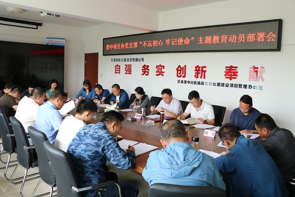 2019年7月3日,景中項目辦黨支部組織召開了“不忘初心、牢記使命”主題教育部署動員會議,會議傳達學(xué)習(xí)了習(xí)近平總書記“不忘初心、牢記使命”重要講話、省委、集團公司及路橋投資公司“不忘初心、牢記使命”主題教育動員部署會精神,對項目辦黨支部開展主題教 育活動進行了動員部署。公司“不忘初心、牢記使命”主題教育指導(dǎo)組參加了會議并提出相關(guān)要求,項目辦全體人員參加了會議。